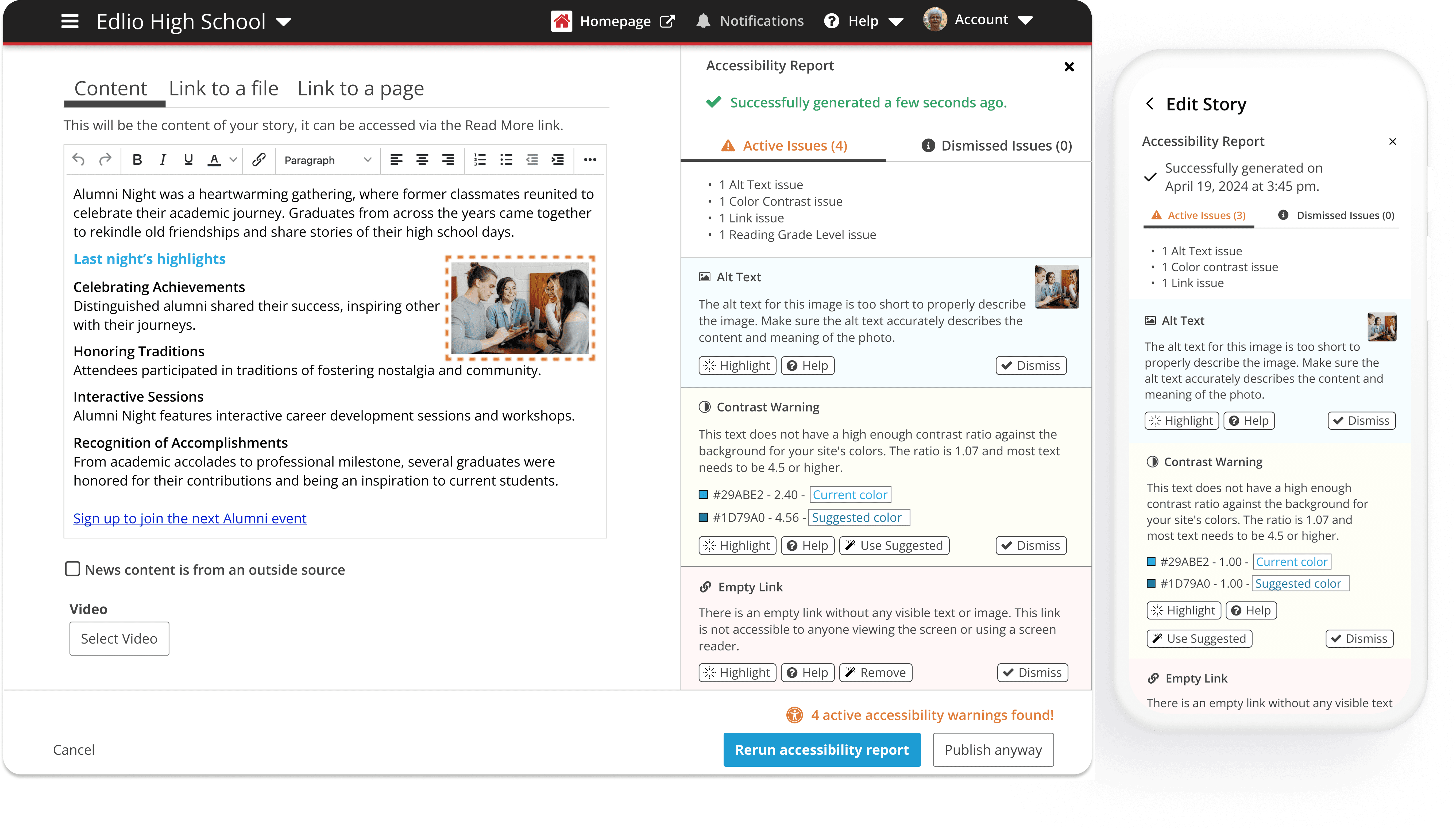 Manage and track all content that have accessibility issues.
